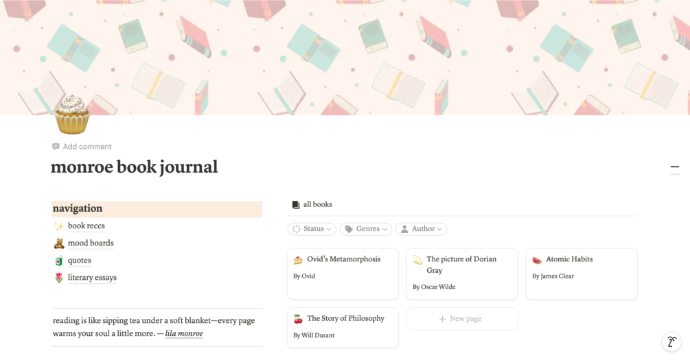 Monroe Book Journal {a template for notion}